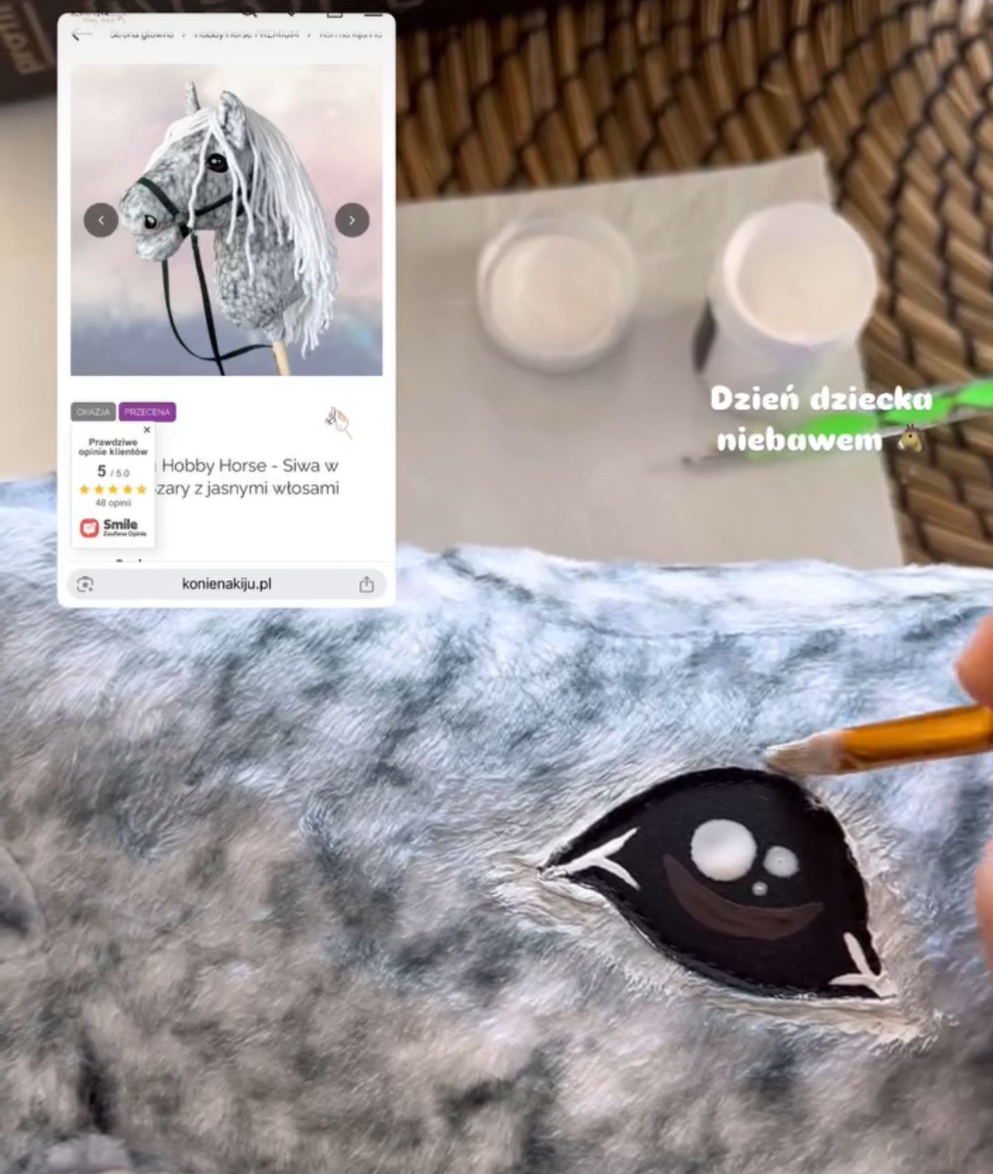➡️ Hobby Horse posiadają elementy ręcznie malowane, używamy tylko atestowanych, ekologicznych farb do tkanin.