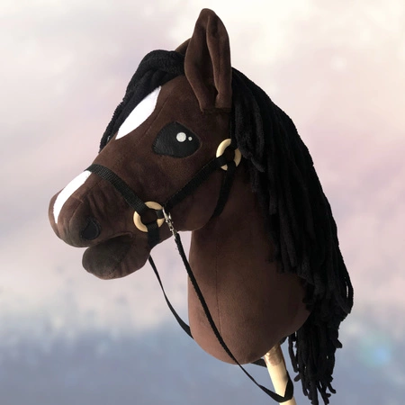 Koń na kiju Hobby Horse - Kasztan Gniady, brązowy z czarną grzywą Średni + Torba / Plecak do transportu